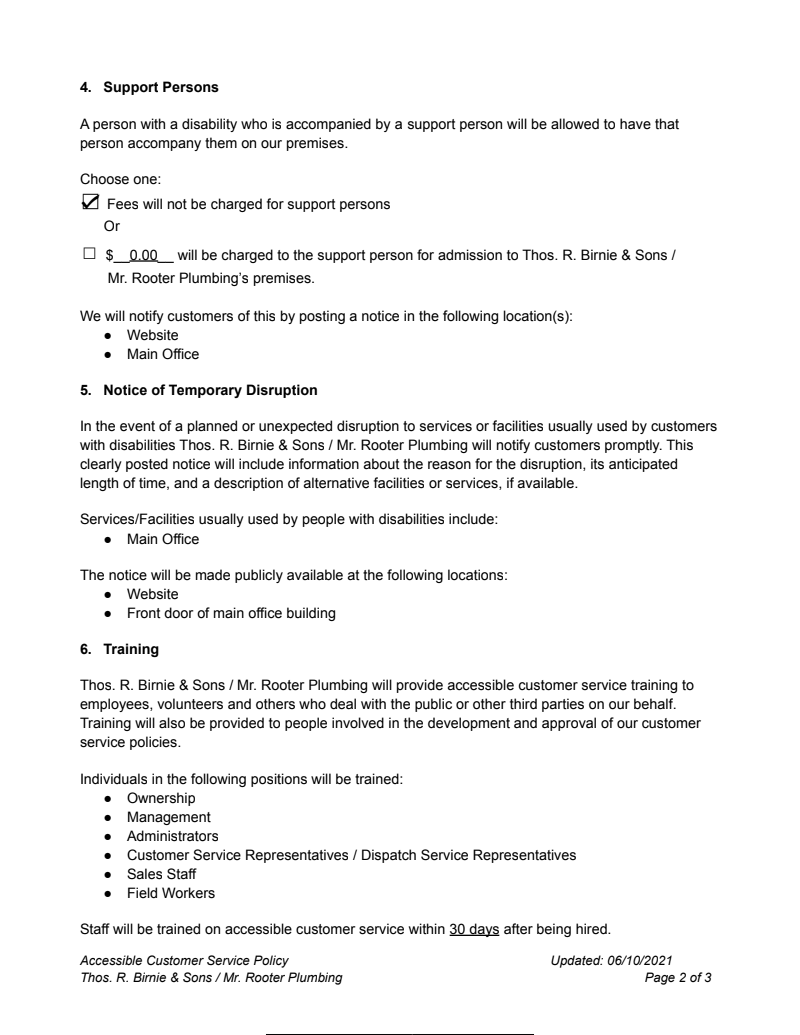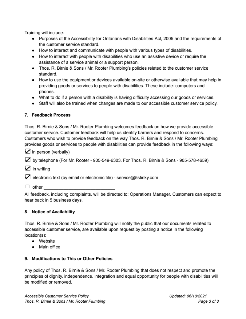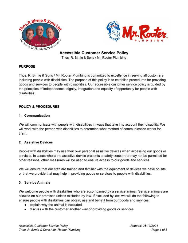 THE BIRNIE AND SONS PLUMBING GUARANTEE